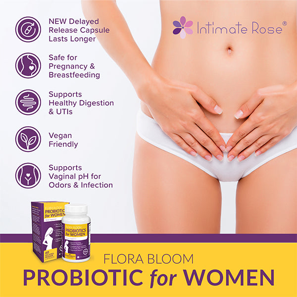 Flora Bloom Probiotics for Women contains prebiotics & probiotics designed to promote vaginal pH, digestion, and help avoid bacterial vaginosis. Our delayed-release capsule and prebiotics help the probiotics survive longer. In addition, we added Cranberry and D-Mannose to support urinary tract health.